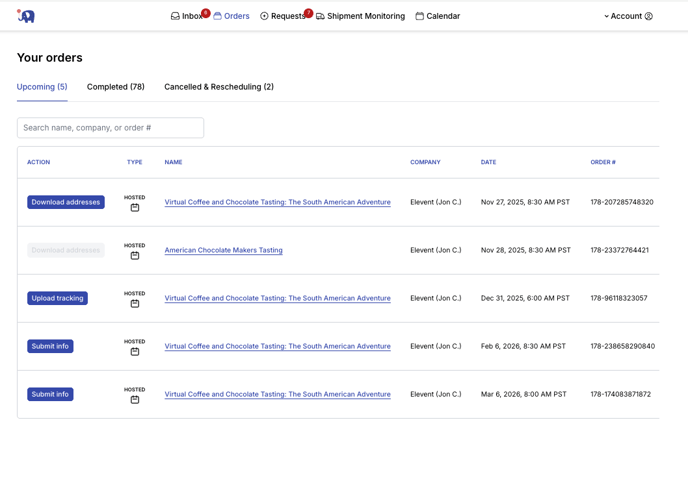4. Once approved, you can view all upcoming orders on the Orders tab
