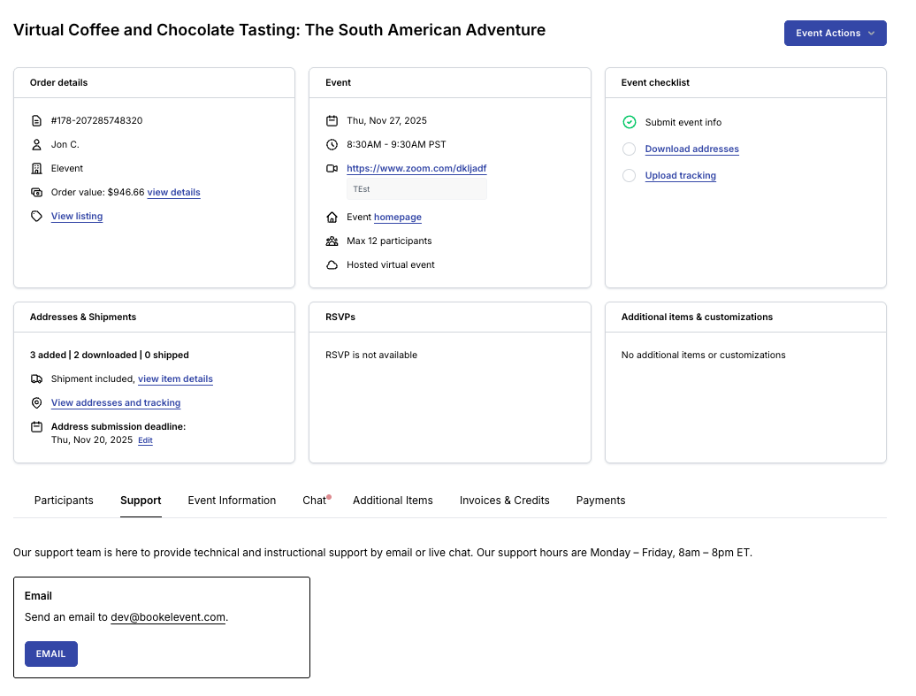 13. If you need any support from our team at Elevent, you can select the Support Tab