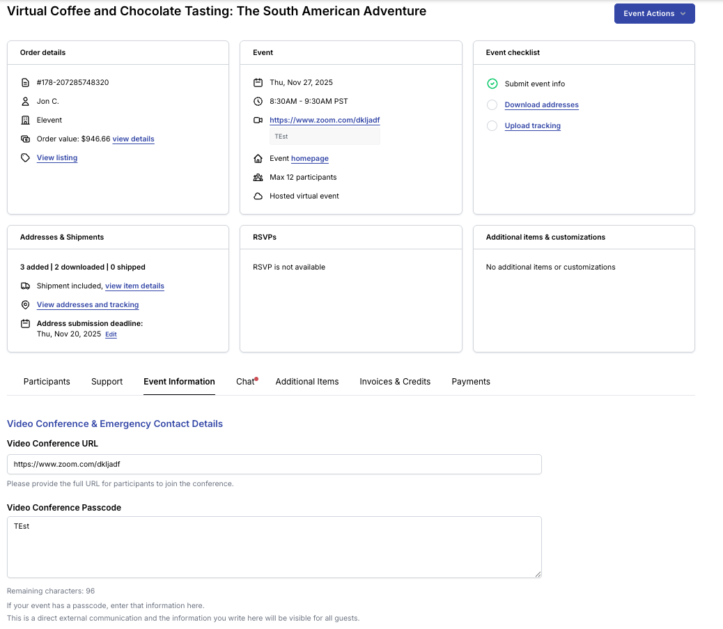 12. If you need to make any edits to your video conference or messaging, you can select the "Event Information" tab